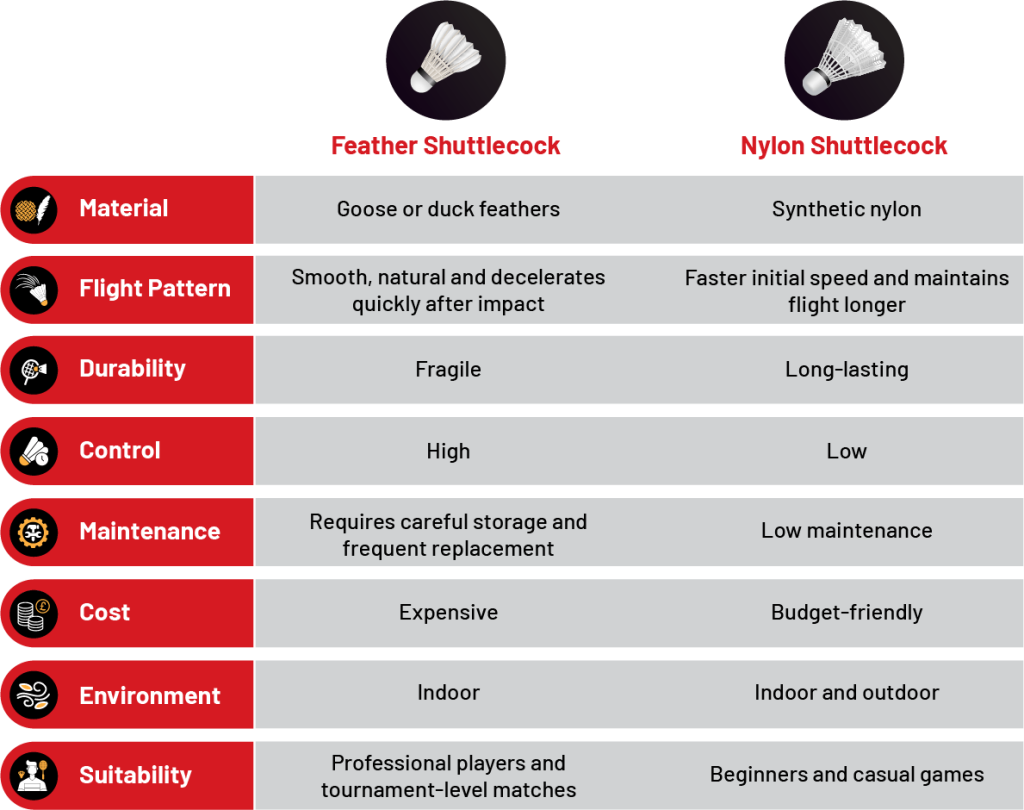 Nylon shuttlecocks are affordable and long-lasting. This is the reason they are preferred for coaching, casual games, and community tournaments.