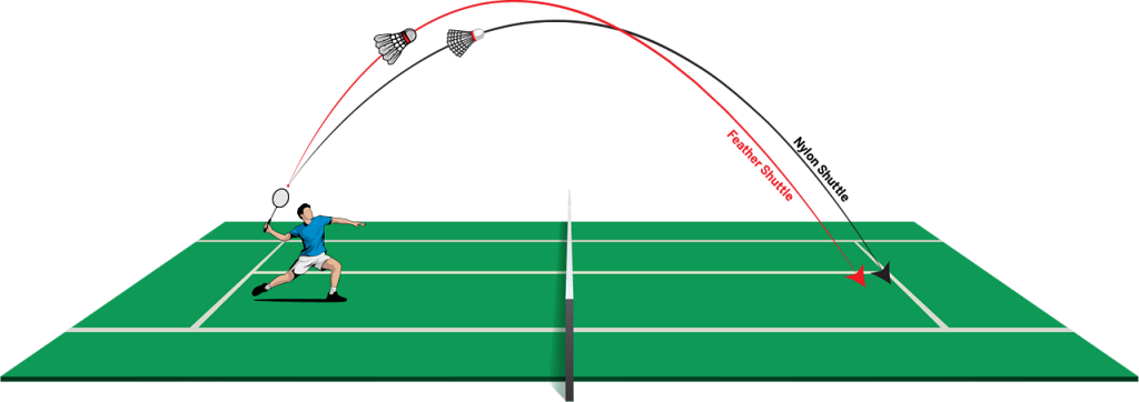 Nylon shuttlecocks keep the pace longer. It does not slow down naturally. Their flight path can be slightly unpredictable in humid or windy conditions, but they still provide steady performance in controlled indoor environments. These shuttlecocks take a slow flight but project flatter.